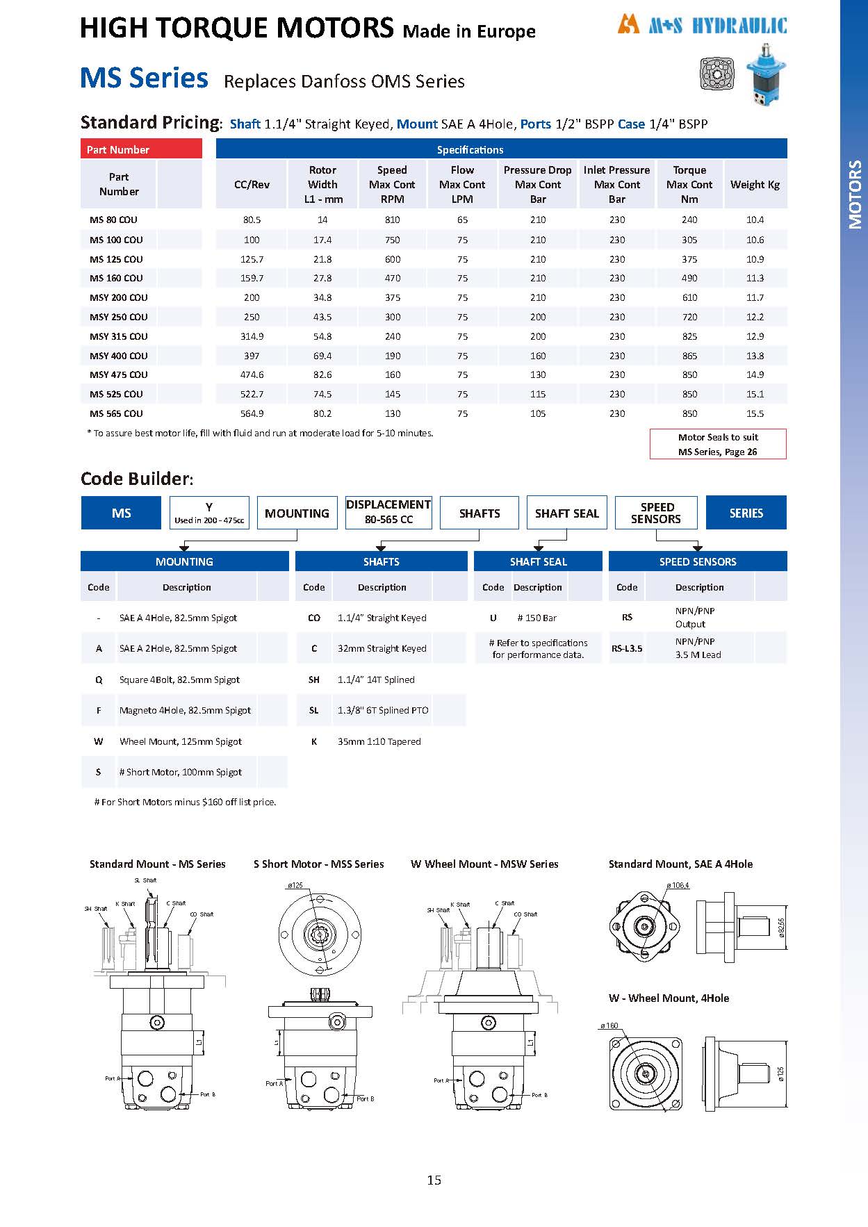 • 可選排量:80 ccm / REV – 565 ccm / REV